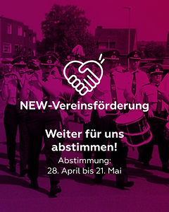 Vom 28. April um 10 Uhr bis 19. Mai 2026 um 12 Uhr kann online abgestimmt werden, welche 60 Vereine je Region in das Finale einziehen. In dieser Zeit können Sie täglich für uns abstimmen. Die Abstimmung ist kostenlos und erfordert keine Angabe persönlicher Daten. Im Finale vom 19. Mai um 12 Uhr bis 21. Mai 2026 um 12 Uhr können Sie nur noch einmalig per Abstimmcode, welcher per SMS an die Mobilfunknummer versandt wird abstimmen. Helft uns, in der Abstimmung einen Publikumspreis zu sichern und stimmt für uns ab.